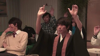 Takane bete dan mengangkat dua tangannya ke atas, Junko masih ga peduli dan menyuruh 2 orang dibelakang yang menjawab. Takane kesal dan melihat kebelakang, mengancam dengan matanya jadi dua orang itu takut HAHAHAHHA. Bahkan saat Junko menyuruh mereka menjawab, mereka menolak karena ketakutan. Hachiya akhirnya angkat bicara dan mengatakan kalau Takane sejak tadi angkat tangan. HAHAHHAAAHHAHA.