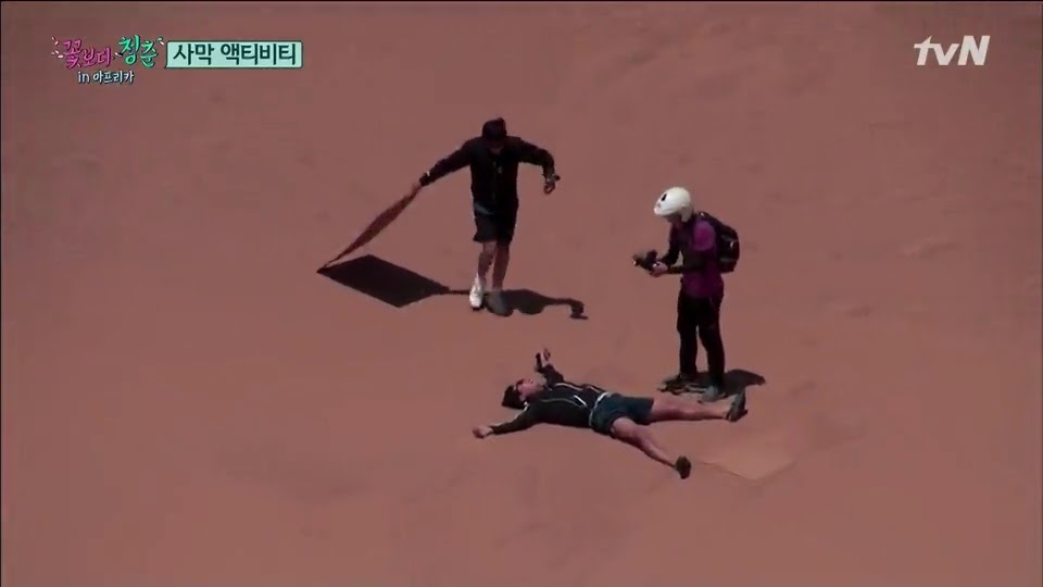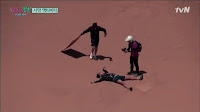 Go Kyung Pyo ikutan menghembuskan nafas mengeluarkan pasir, tapi kayaknya ada ingus keluar HAHAHAHHAAHAHHA.
