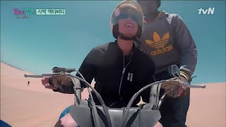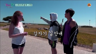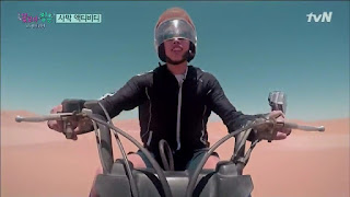 Tapi dari sini aku jadi tahu tipe-nya Ryu Jun Yeol. Dia akan tertarik pada gadis yang membuatnya kagum. Nah kali ini dia kagum karena gadis itu travelling sendirian, kalian bisa lihat kilatan di matanya karena menurutnya wanita travelling sendirian sangat mengagumkan, apakagi ini Afrika lho, mereka aja kesulitan, gimana seorang gadis coba?