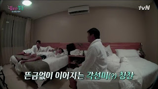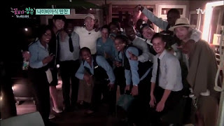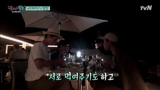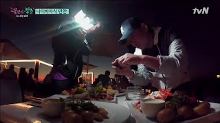 Mereka sadar mereka nggak akan ada makan mewah lagi selanjutnya jadi mereka memuaskan diri dengan malam itu. Beneran lho, kayaknya mereka kelaperan banged. JAe Hong bahkan sampai akan menangis saking enaknya. LOL.