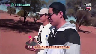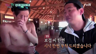 Sementara yang bertiga sibuk dengan makanan, Go Kyung Pyo kesepian sendirian membereskan tenda. Bahkan ia mulai kehilangan akalnya dengan menyapa seekor burung yang menemaninya disana HHAHAHAHAHHAHAHA.