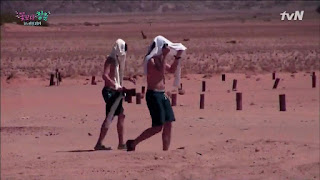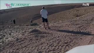 Go Kyung Pyo ikutan menghembuskan nafas mengeluarkan pasir, tapi kayaknya ada ingus keluar HAHAHAHHAAHAHHA.