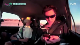 Kali ini kembali ke mobil, Go Kyung Pyo akan menyetir dan sebelumnya, ia memutar musik dulu untuk menemaninya menyetir.
