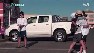 Saat beres-beres dekat mobil, Ahn Jae Hong sudah mulai memikirkan menu makan mereka berikutnya dan tentu saja temannya berdiskusi adalah asisten Chef, Park Bo Gum.